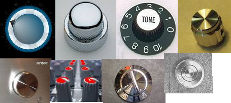 I found all these words used for the knobs, controls, buttons (all synonyms), in no particular order: control de volumen/tono/etc. botón de ... interruptor de ... mando de ... regulador de ... perilla de ... tornillo de ... potenciómetro de ... dial de ... |