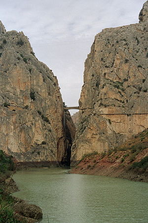 The Caminito del Rey is a one meter wide walkway about 700 feet above the Guadalhorce river in Andalucía. It was finished in 1905 and has currently fallen in disrepair.