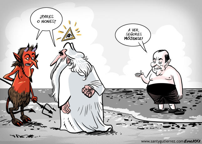 During Franco's times, there was a plane with nuclear bombs falling in the sea near a beach. The minister Fraga and other people went there to have a baht, trying to show the beach was sure. They wore those old, long swimsuits*.