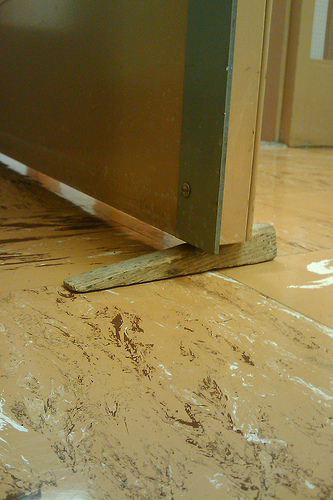 doorstop - cuña (this is a wooden or rubber wedge that goes under the door to keep it open)